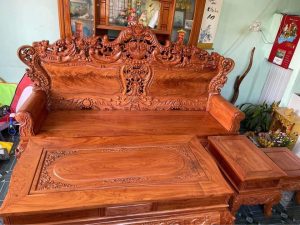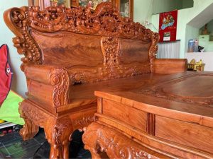 Chương liền toàn bộ, đục hoa lá cây - Hàng gồm6 món,2 ghế đơn, 1 đoản dài, 2 ghế đôn và 1 bàn