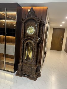 Đồng Hồ Tứ Trụ gỗ mun đuôi công cao 2m3 máy Sunny Hàn Quốc là sự kết hợp hoàn hảo giữa nghệ thuật điêu khắc truyền thống và công nghệ hiện đại. Với thiết kế tứ trụ độc đáo, sản phẩm không chỉ là một chiếc đồng hồ mà còn là một tác phẩm nghệ thuật mang đến sự sang trọng và đẳng cấp cho không gian sống của bạn.